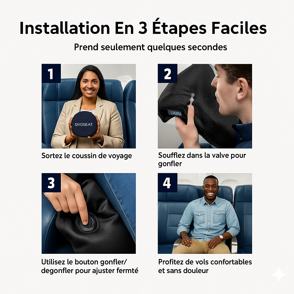 Les sièges d’avion sont souvent durs et inconfortables. Après plusieurs heures assis, les douleurs au dos et au coccyx deviennent inévitables, transformant votre voyage en véritable épreuve.